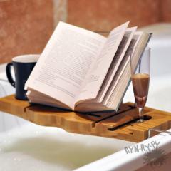 Удобный и функциональный столик для ванной поможет Вам миновать мокрый книжный кошмар и не пролить ни капли любимого напитка.