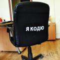 Рубашка с надписью "Я КОДЮ" для внешней стороны офисного кресла и с надписью "Я ХОДЮ" для внутренней стороны - отличный подарок для программиста с профессиональным чувством юмора!